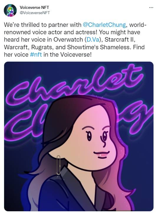 한편 보이스벌스NFT와 협력한 성우는 트로이 베이커 뿐만이 아니다. 회사측에 따르면 '오버워치'에서 디바(D.Va)를 맡은 샬렛 타카하시 정(Charlet Takahashi Chung, 한국 이름 정지혜)도 목소리를 제공할 예정이다. 다만 그녀는 이와 관련해 별다른 공식 입장을 밝히지 않았다.