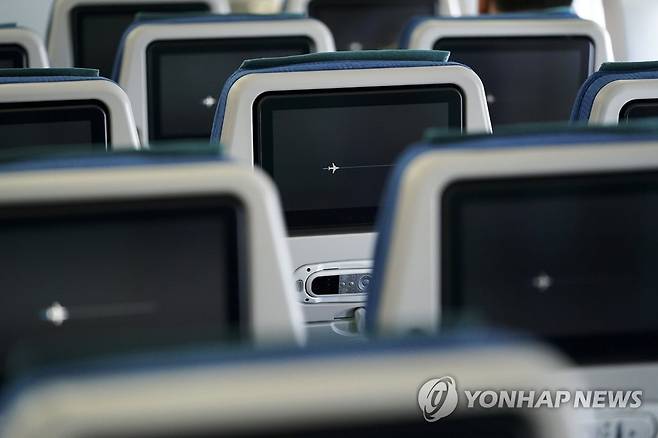 (서울=연합뉴스) 청와대는 15일 11년 9개월만에 교체된 신형 공군 1호기를 공개했다. 새로 도입된 공군 1호기는 보잉 747-8i 기종으로 기존 1호기 대비 항속거리 및 순항속도가 증가됐고 내부 개조를 통해 회의공간 및 편의성이 증가됐다. 사진은 신형 공군 1호기의 모습. 2022.1.15 [청와대 제공, 재판매 및 DB 금지]