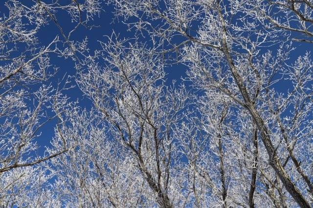 해가 떠오르고 정상에 가까워질수록 순백의 눈꽃터널 사이로 코발트색 하늘이 비친다. 겨울 계방산을 더욱 청초하고 오묘하게 하는 시그니처 풍경이다. 상고대를 두툼한 솜옷처럼 입고 있는 나뭇가지들은 영락없이 푸른 바닷물 속에서 춤추고 있는 하얀 산호의 모습니다. 지난해 여름 울릉도에서 스킨스쿠버다이빙을 하며 수심 45m 바닷속에 본 은빛 해송(海松·천연기념물 456호)을 산속에서 다시 만난 기분이었다.