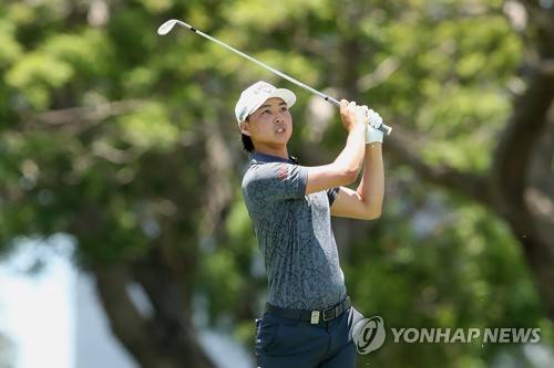 epa09686456 Golfer Min Woo Lee plays a shot during the Australian PGA Golf Championships at Royal Queensland Golf Club, in Brisbane, Australia, 15 January 2022. EPA/JONO SEARLE AUSTRALIA AND NEW ZEALAND OUT