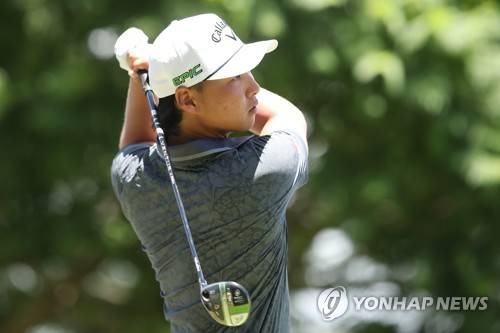 epa09686457 Golfer Min Woo Lee plays a shot during the Australian PGA Golf Championships at Royal Queensland Golf Club, in Brisbane, Australia, 15 January 2022. EPA/JONO SEARLE AUSTRALIA AND NEW ZEALAND OUT