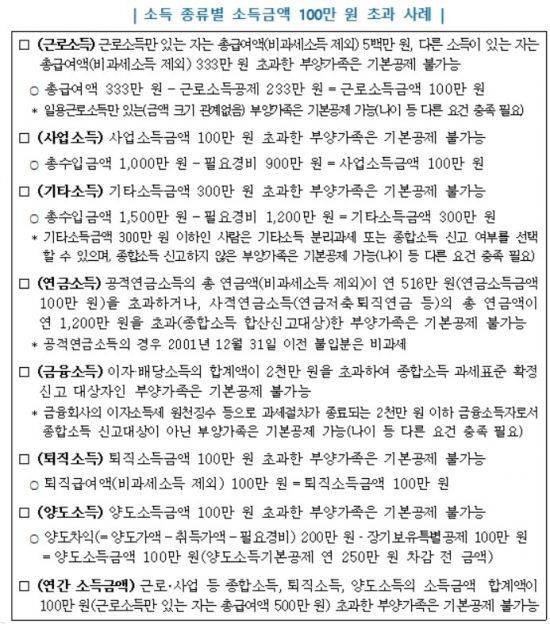 =연말정산시 배우자를 포함한 부양가족을 기본공제대상자로 하기 위해서는 해당 부양가족의 연간 소득금액의 합계액이 100만 원(근로소득이 있는 자는 총급여액 500만 원) 이하 요건을 충족해야 한다.