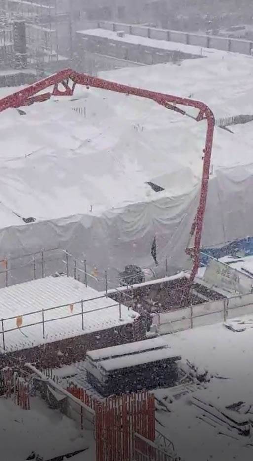 [광주=뉴시스] 변재훈 기자 = 광주 현대산업개발 신축 아파트 붕괴 사고가 난 2단지와 인접한 1단지 현장에서 2020년 12월~지난해 1월 사이 눈발 날리는 궂은 날씨 속 콘크리트 타설 강행하는 모습. (사진=독자 제공) 2022.01.15. photo@newsis.com *재판매 및 DB 금지