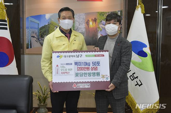 15일 대구 남구에 따르면 꽃담한방병원이 어려운 이웃을 위해 백미 10㎏ 50포를 남구청에 전달했다.