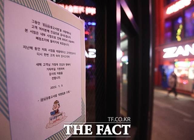 [더팩트ㅣ이동률 기자] 15일 오후 '쥴리 벽화'로 논란이 됐었던 서울 종로구의 중고서점에 폐업 안내문이 붙어있다.