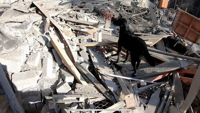 붕괴사고 현장 수색하는 구조견 '소백'