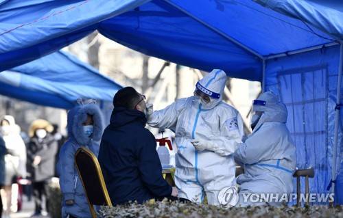In this photo released by China's Xinhua News Agency, a worker wearing a protective suit swabs a man for a coronavirus test in northern China's Tianjin Municipality, Saturday, Jan. 15, 2022. China further tightened its anti-pandemic measures in Beijing and across the country on Friday as scattered outbreaks continued ahead of the opening of the Winter Olympics in a little over two weeks. (Zhao Zishuo/Xinhua via AP) NO SALES, PHOTO RELEASED BY XINHUA NEWS AGENCY
