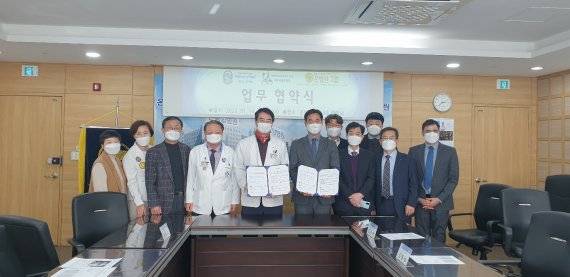 온종합병원 김동헌 병원장과 주한 네팔대사관 람 싱 타파 대리대사는 지난 14일 코로나 19 확산에 따른 방역수칙으로 각각 부산 부산진구 서면 온종합병원 9층 회의실과 서울 소재 주한 네팔대사관에서 화상을 통해 의료 협약식을 가졌다.