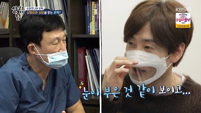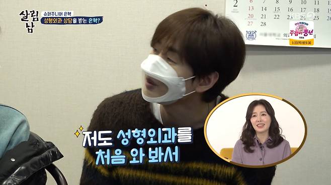 막간을 이용해 은혁은 "성형외과 처음 와봤다. 저희 얼굴도 봐달라"고 요청했다. 이어 "데뷔 전에 '쌍꺼풀 수술 안 해도 되냐?'고 물었는데 이수만 대표가 '그러면 나머지도 다 해야한다'고 말려서 안했다"고 털어놨다.