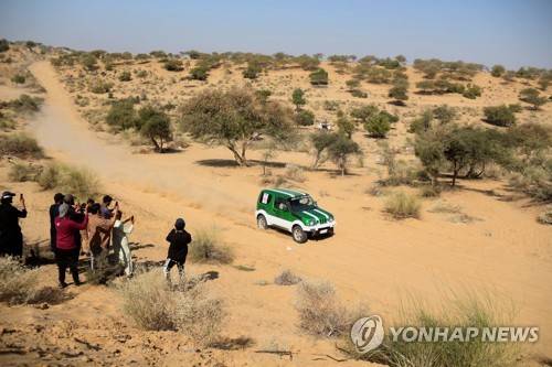 epa09687014 A Suzuki off-road SUV in action during the Desert Challenge Jeep Rally, in Hyderabad, Pakistan, 15 January 2022. Some 78 participants compete in the three-day Desert Challenge Jeep Rally organized by the Sindh Sports Department. EPA/NADEEM KHAWAR