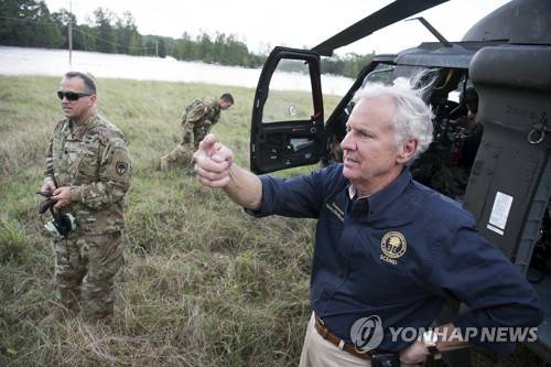 FILE - South Carolina Gov. Henry McMaster talks about rising floodwaters after Florence struck the Carolinas, Monday, Sept. 17, 2018, near Wallace, S.C. Facing state budgets that are flush with cash, Democratic and Republican governors alike want to spend part of their windfalls on projects aimed at slowing climate change and guarding against its consequences, from floods and fires to cleaning up dirty air. (AP Photo/Sean Rayford, File) FILE PHOTO
