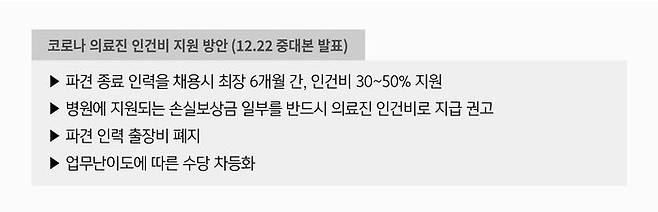 일부 전담병원은 기존 인력 유출은 심하고, 병원이 필요로 하는 수준의 파견 인력은 제때 충원이 되지 않으면서 '중수본 파견 수준의 임금'을 내걸고 '계약직 간호사' 모집에 나서고 있습니다. 이 병원 관계자는 "거점 병원 되면서 (확충한 병상 대비) 인력이 더 부족해졌는데, 코로나 병원이 많아지면서 사람 구하는 곳들이 많다보니 쉽지가 않다. 파견 인력도 요청한 수준에 맞게 오지 않다보니 임금을 높여서 구하게 됐다"고 말했습니다.