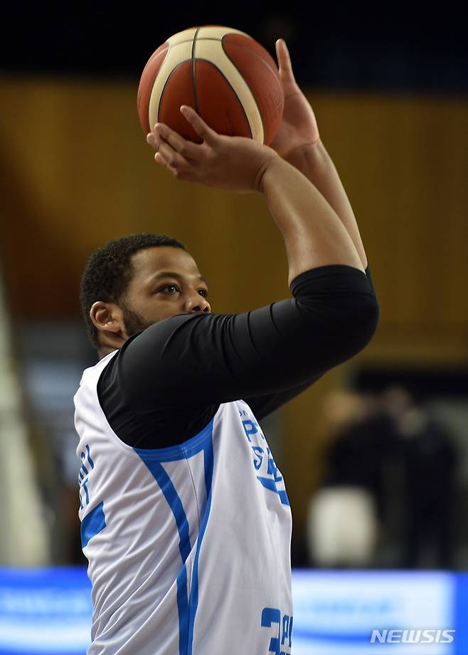 [대구=뉴시스] 이무열 기자 = 오마리 스펠맨(안양)이 16일 오후 대구체육관에서 열린 ‘2021~2022 KGC인삼공사 정관장 프로농구 올스타전’에서 포카리스웨트 3점슛 콘테스트 예선전에 참가하고 있다. 2022.01.16. lmy@newsis.com