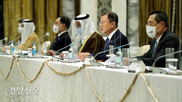 '한-UAE 수소 협력 비즈니스 라운드테이블' 참석한 문 대통령 [경향포토]