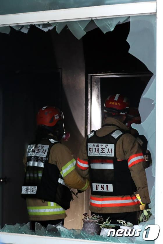 (서울=뉴스1) 황기선 기자 = 16일 오후 서울시 관악구 봉천동 서울대 관악학생생활관(기숙사)에서 화재가 발생해 소방대원이 현장조사를 하고 있다.