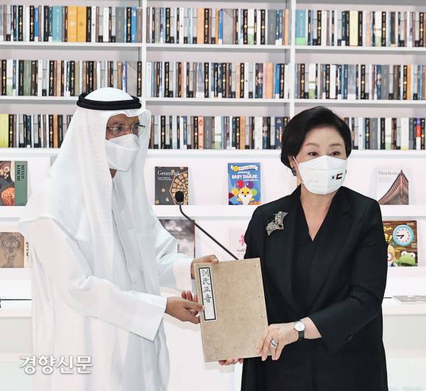김정숙 여사, 중동 최대 도서관에 훈민정음 등 한국 도서 기증 [경향포토]