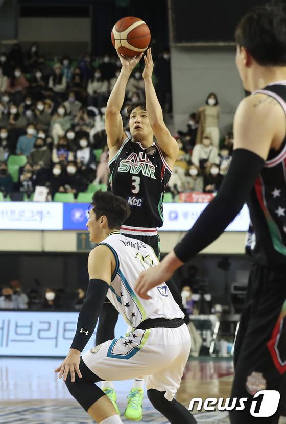 (대구=뉴스1) 공정식 기자 = 16일 오후 대구체육관에서 열린 '2021-2022 KGC인삼공사 정관장 프로농구' 올스타전 경기, 허웅이 슛을 쏘고 있다. 2022.1.16/뉴스1