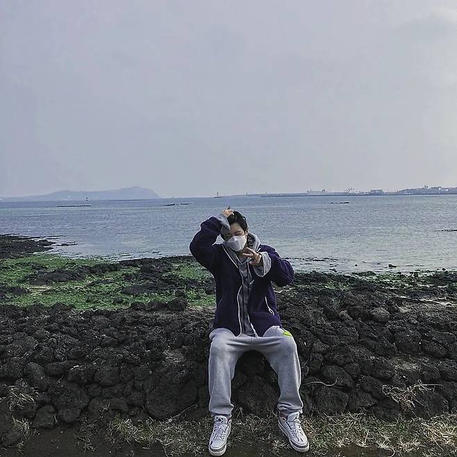 공개된 사진 속 바비는 제주 바다를 배경으로 돌담 위에 앉아 사진을 찍고 있다. 편안한 차림으로 브이 포즈를 취하는 바비의 모습이 눈길을 끈다.