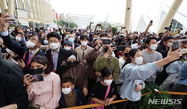 두바이 엑스포 한국의 날 문화공연보는 관람객들