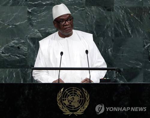 epa09689134 (FILE) - President of Mali Ibrahim Boubacar Keita speaks during the opening session of the General Debate of the 72nd United Nations General Assembly at UN headquarters in New York, USA, 19 September 2017 (reissued 16 January 2022). Former Mali president Ibrahim Boubacar Keita has died at the age of 76, his family and the former justice minister are cited on 16 January 2022. EPA/JASON SZENES *** Local Caption *** 53778643