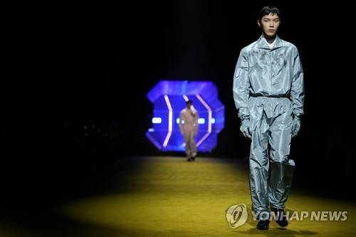 A model wears a creation as part of the Prada men's Fall-Winter 2022-23 collection, unveiled during the Fashion Week in Milan, Italy, Sunday, Jan. 16, 2022. (AP Photo/Luca Bruno)