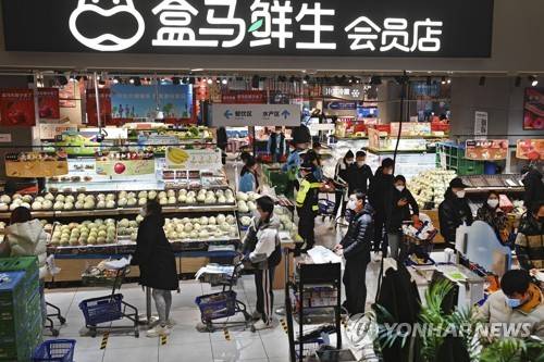 In this photo released by Xinhua News Agency, residents wearing face masks to protect from the coronavirus shop for groceries at a supermarket in Qujiang New District of Xi'an in northwestern China's Shaanxi Province on Jan. 15, 2022. The Chinese city of Xi'an has gradually begun lifting restrictions after over three weeks of lockdown as authorities sought to stamp out a local outbreak before the Beijing Winter Olympic Games are due to start. (Tao Ming/Xinhua via AP) NO SALES PHOTO RELEASED BY XINHUA NEWS AGENCY