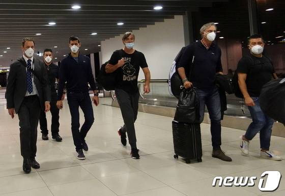 (로이터=뉴스1) 신웅수 기자 = 신종 코로나바이러스 감염증(코로나19) 백신을 거부한 세계 테니스 랭킹 1위 노박 조코비치(세르비아)가 16일(현지시간) 호주 오픈 참가가 무산된 후 비행기를 탑승하기 위해 멜버른 공항으로 향하고 있다.