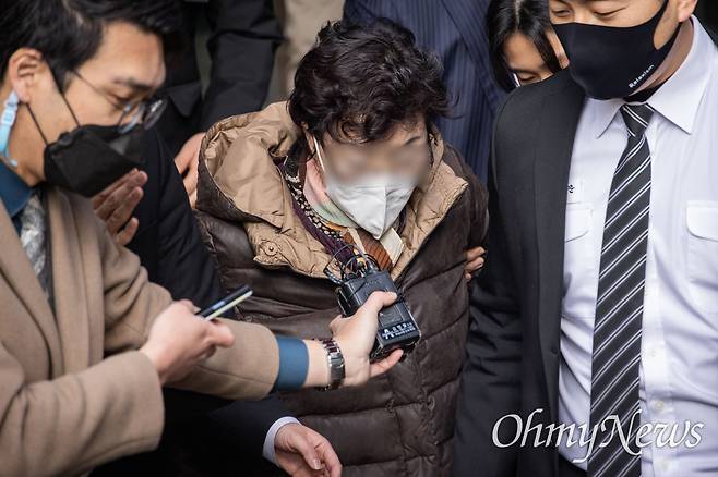 | ▲ 윤석열 국민의힘 대선후보의 장모 최은순씨가 2021년 12월 23일 오전 의정부지방법원에서 '통장 잔고증명 위조' 관련 1심 선고심에서 징역 1년을 선고 받고 법정을 나오고 있다. |