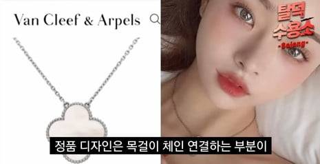 최근 한 온라인 커뮤니티 카페에 송지아가 착용한 '반클리프 아펠' 목걸이가 어떤 사이즈 모델인지 묻는 글이 게재됐다. 해당 글에는 "정품 디자인이 아닌 것 같다", "체인과 펜던트 연결되는 위치가 다르다"는 반응이 쏟아졌다.