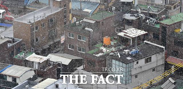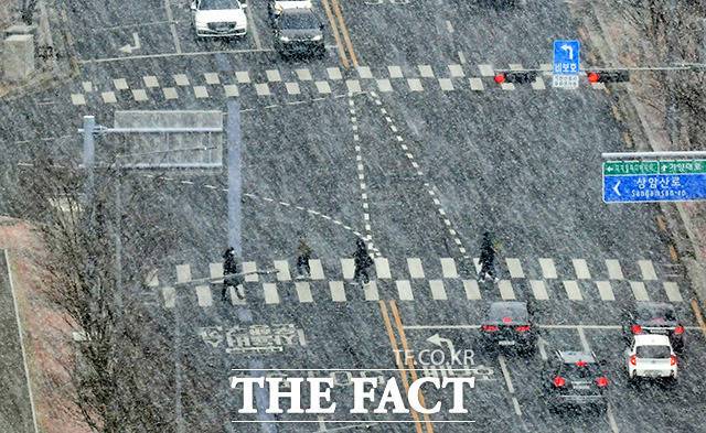 [더팩트ㅣ임영무 기자] 중부지방과 일부 남부내륙에 한파특보가 내려진 17일 오후 서울 마포구 상암동 일대에 함박눈이 내리고 있다.