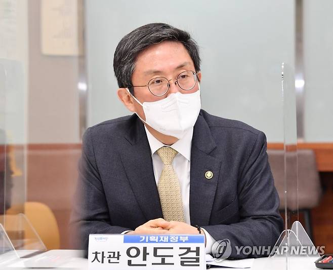 (서울=연합뉴스) 안도걸 기획재정부 차관이 17일 그린스마트스쿨 현장인 충남 청양군 소재 정산중학교를 방문, '미래교육 간담회'에서 발언하고 있다. 2022.1.17 [기획재정부 제공. 재판매 및 DB 금지]
