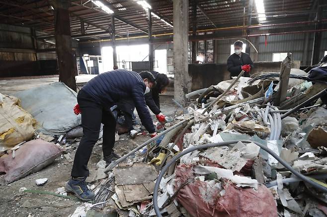 익산시는 17일 "누군가 폐업한 장점마을 비료공장 내부에 생활·건축폐기물을 몰래 버린 것을 확인, 경찰에 무단침입과 폐기물관리법 위반 혐의로 수사를 의뢰했다"고 밝혔다. 사진은 비료공장에 몰래 버려진 폐기물. 2022.1.17