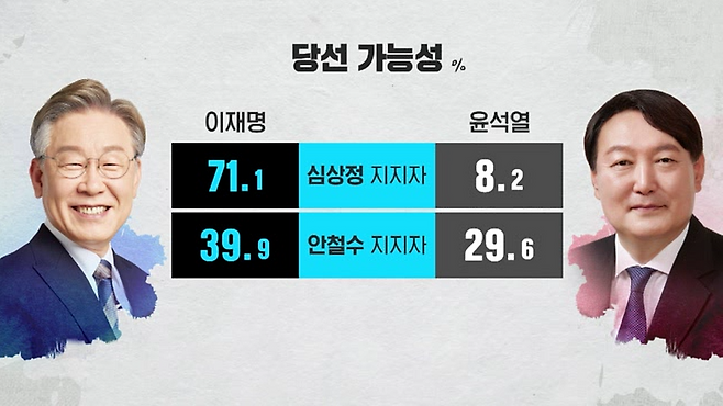 제3지대를 보면 심상정, 안철수 지지층 모두 이 후보 당선 가능성이 더 크다고 봤습니다.