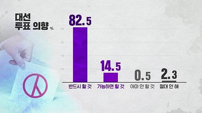 투표하겠다는 의향은 적극 투표층 82.5%를 포함해 97%에 달했습니다.