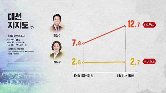 심 후보는 0.1%포인트, 안 후보는 4.9%포인트 각각 상승했습니다.