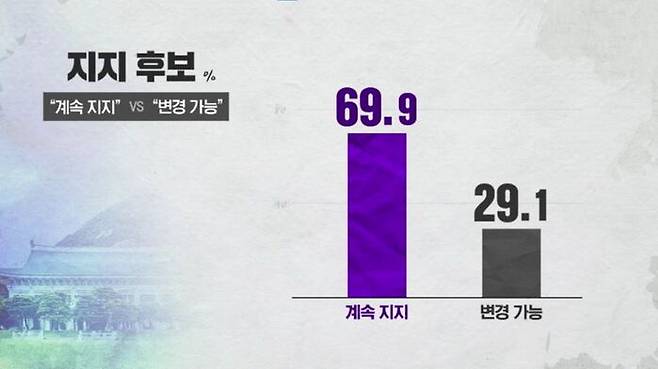 현재 지지하는 후보를 앞으로도 계속 지지할 것인지 물어보니 69.9%가 계속 지지하겠다고 답했습니다.