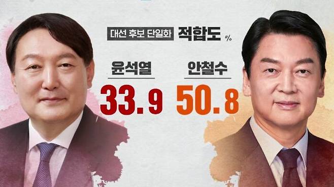 [여론조사] 단일화 적합도? 윤석열 33.9% vs 안철수 50.8%