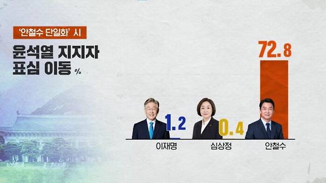 윤 후보로 단일화를 하면 안 후보 지지자들은 37.6%만 윤 후보로 표가 옮겨갔지만,