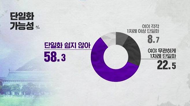 이런 가상의 시나리오들, 과연 현실화할 수 있을지 물어봤더니 후보 간 입장 차이로 단일화가 쉽지 않을 것 같다가 58.3%로 가장 높게 나타났습니다.
