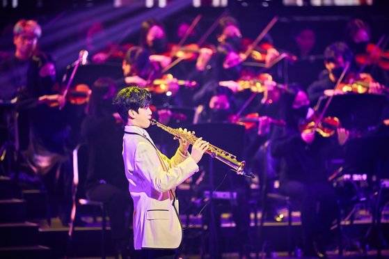 오케스트라와 합창단이 함께한 ‘황금별’, ‘천개의 바람이 되어’, ‘희망가’ 무대로 콘서트의 열기를 달군 정동원은 트로트부터 뮤지컬 넘버, 색소폰 연주 등 장르를 넘나들며 약 2시간을 풍성하게 채웠다.