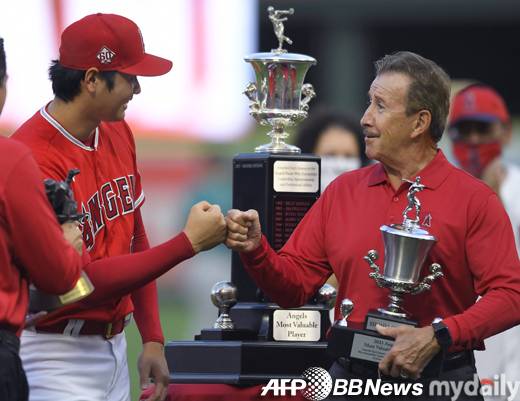[오타니(위), 오타니와 아테 모레노 LA 에인절스 구단주(아래). 사진 = AFPBBNEWS]- ⓒ마이데일리(www.mydaily.co.kr). 무단전재&재배포 금지 -