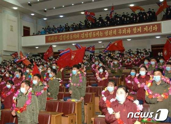 (평양 노동신문=뉴스1) = 북한 노동당 기관지 노동신문은 18일 평안남북도의 청년들이 어렵고 힘든 부문에 탄원하고 있다고 1면에 전했다. 사진은 탄원 행사에 참석한 평안남도 청년들.