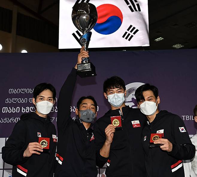 김정환, 구본길, 오상욱, 김준호로 구성된 대표팀은 오늘(18일) 조지아 트빌리시에서 열린 국제펜싱연맹(FIE) 사브르 월드컵 남자 단체전에서 독일을 꺾고 우승했습니다.
