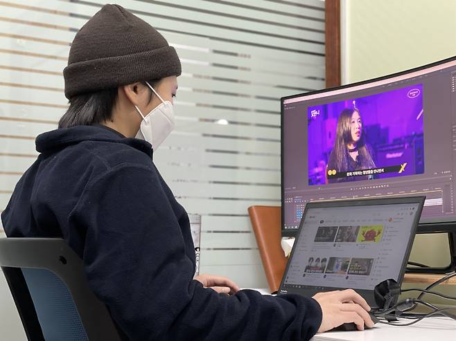 | ▲ 유튜브 콘텐츠를 편집하고 있는 김유라씨 |