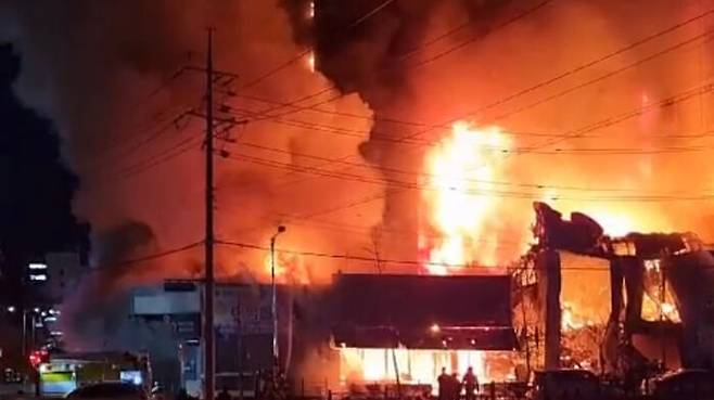소방 당국은 저녁 8시 반쯤 큰 불길을 잡은 뒤 밤 11시 20분쯤 화재를 모두 진압했습니다.
