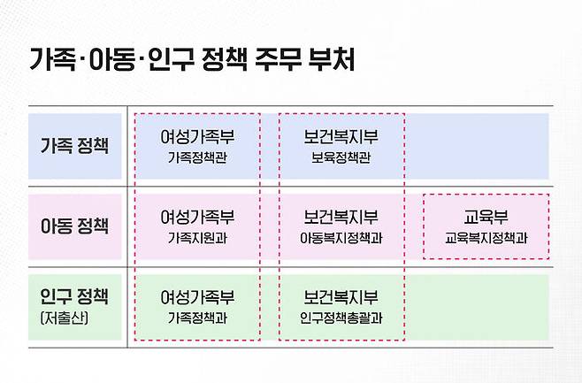 이 말을 좀 더 구체적으로 살펴봤습니다. 사실은팀이 가족, 아동, 인구감소, 정확히는 저출산 문제 담당 부서들을 정부 부처 별로 조사했더니, 부처별 칸막이 때문에 통합적인 정책 수립이 어려울 수도 있겠다는 생각이 들었습니다.