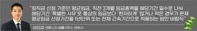 많은 사업장에서 근로자와 연봉계약을 체결하여 연간 단위로 임금총액을 산정하고, 확정기여형 퇴직연금제도에서는 사용자의 부담금을 연간 임금총액의 12분의 1 이상으로 정하여(근로자퇴직급여보장법 제20조 제1항) 연간 임금을 산정 기준으로 하고 있다. 이러한 점을 고려하면, 입법론상 평균임금 산정기간을 현행 3개월에서 1년 단위로 개정하여 부작용을 줄이거나, 전체 근속기간을 적용하여 산정하는 방안 등에 대해서 신중히 검토해 볼 필요가 있다고 생각된다.
