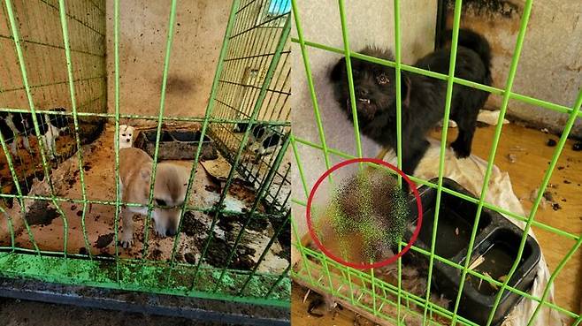 단체는 "오물 범벅이 된 밥그릇은 모두 비어 있었고, 앞다리가 덜렁거릴 정도로 부상이 심한 개는 아무 조치 없이 방치되어 있었다. 또 다른 개는 오물 위에서 숨이 멎어가고 있었다. 컨테이너 구석에는 다른 개의 사체를 뜯어먹는 아이까지...보호소가 아니라 지옥이었다"고 했습니다.