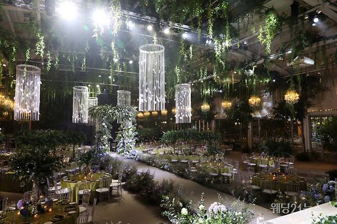 마치 비밀의 화원 같은 드라마틱하고 몽환적인 공간 연출과 플라워 장식, 테이블 세팅이 시선을 모았으며, 화려하면서 웅장함을 강조한 플라워 트러스 연출은 이날의 하이라이트로 웨딩 관계자들과 예비부부의 마음을 사로잡았다.