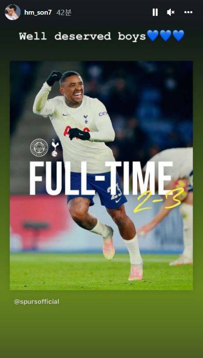 부상으로 함께 뛰지 못했지만, TV로 경기를 지켜본 손흥민은 기쁨을 감추지 못했다. 손흥민은 자신의 SNS에 베르바인과 함께 "MY BOY!!!!!"라며 애정을 드러냈고, "장하다 내 동료들(Well deserved boys)"이라며 기쁨을 표출했다.